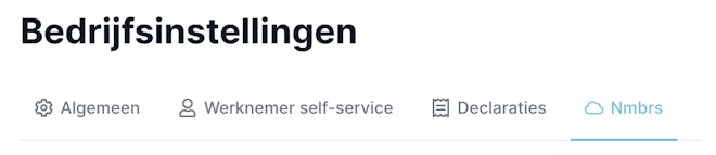 Je kunt dit op 2 manieren instellen. Ga nadat je het betreffende bedrijf hebt geselecteerd naar het menu instellingen. Daar kies je voor de tab Nmbrs.